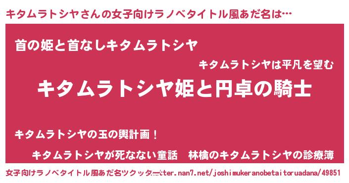 | 男性向けラノベタイトル風あだ名 | 『キタムラトシヤアートオンライン』 |
