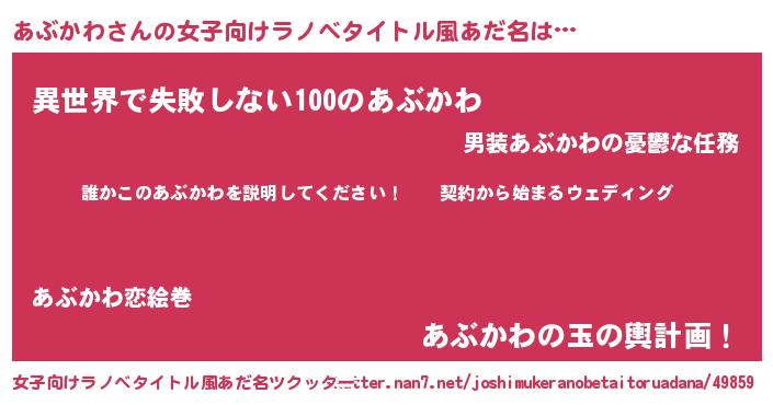 | 男性向けラノベタイトル風あだ名 | 『アブカワアートオンライン』 |