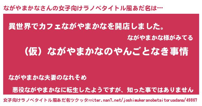 | 胡散臭い通販商品みたいなあだ名 | 『必ず成功する霊験あらたかなお札…その名も「ながやまかな」』 |