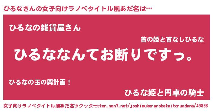 | 欧米人風あだ名 | 『ケンブリッジひるな』『マイケルひるな』 |