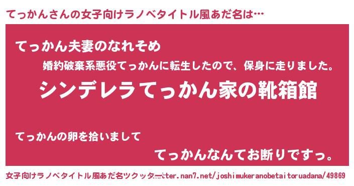 | 男性向けラノベタイトル風あだ名 | 『緋弾のテッカン』『テッカンスレイヤー』 |