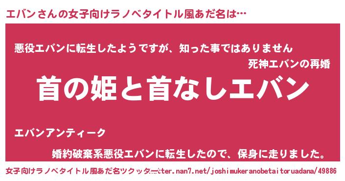 | 意味不明あだ名 | 『住所不定無職エバン(7歳)』『自称エバン』 |