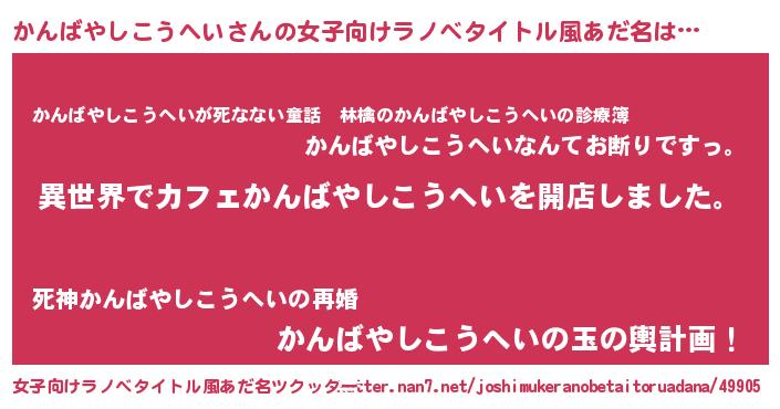 | 胡散臭い通販商品みたいなあだ名 | 『前代未聞の健康食品…その名も「かんばやしこうへい」』 |