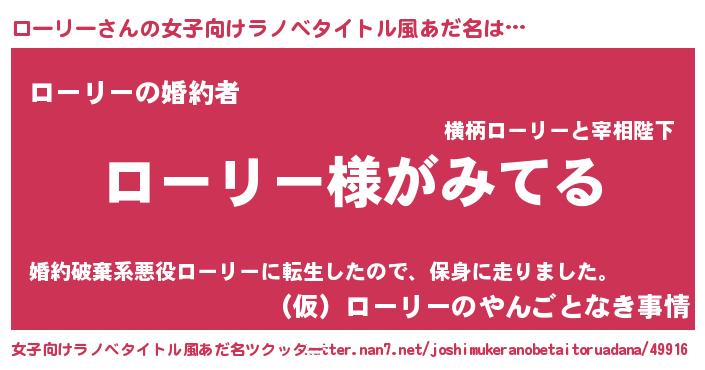 | 男性向けラノベタイトル風あだ名 | 『ローリーの嫁は女の子じゃないと思った?』 |