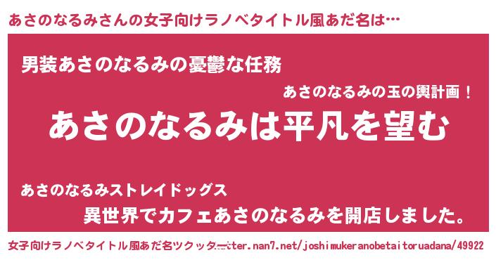 | 男性向けラノベタイトル風あだ名 | 『ダンジョンにあさのなるみを求めるのは間違っているだろうか』 |