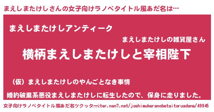 | 男性向けラノベタイトル風あだ名 | 『まえしまたけしに滅ぼされるだけの簡単なお仕事です』 |