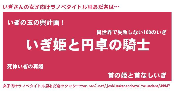 | 男性向けラノベタイトル風あだ名 | 『いぎの憂鬱』『転生したらいぎだった件』 |