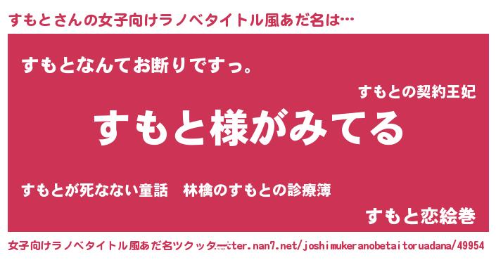 | 男性向けラノベタイトル風あだ名 | 『すもとの嫁は女の子じゃないと思った?』 |