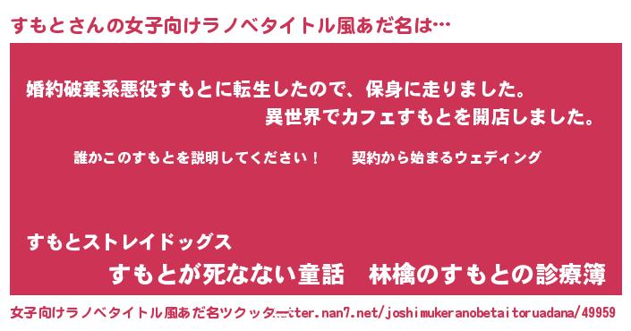 | 男性向けラノベタイトル風あだ名 | 『スモトアートオンライン』 |