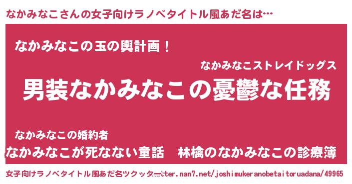 | 男性向けラノベタイトル風あだ名 | 『うちのなかみなこが世界を掌握している!』 |