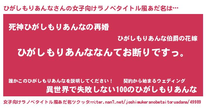 | 肩書あだ名 | 『ひがしもりあんな総統』 |