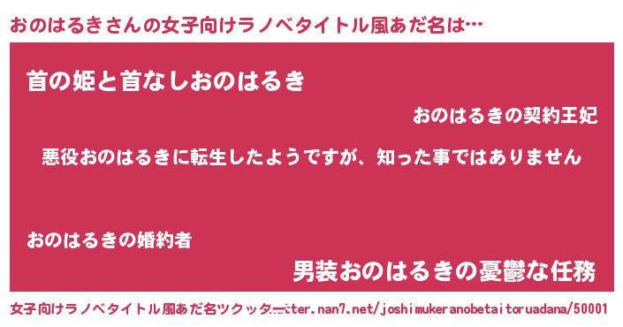 | 意味不明あだ名 | 『住所不定無職おのはるき(7歳)』 |