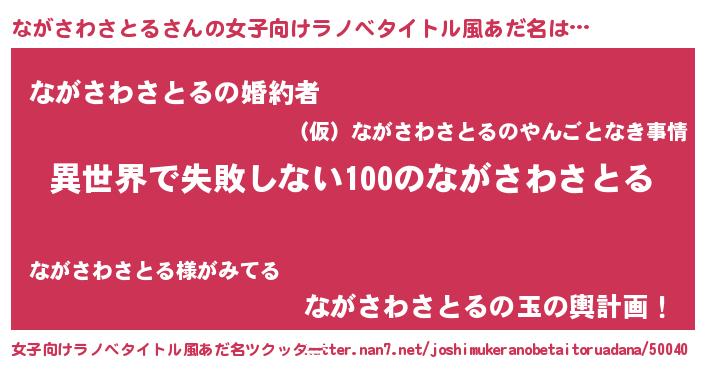 | 意味不明あだ名 | 『永久保存ながさわさとる』 |