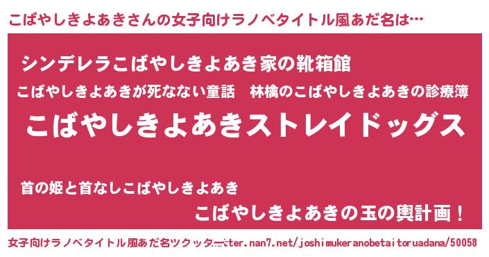 | 男性向けラノベタイトル風あだ名 | 『Re:こばやしきよあきから始める異世界生活』 |