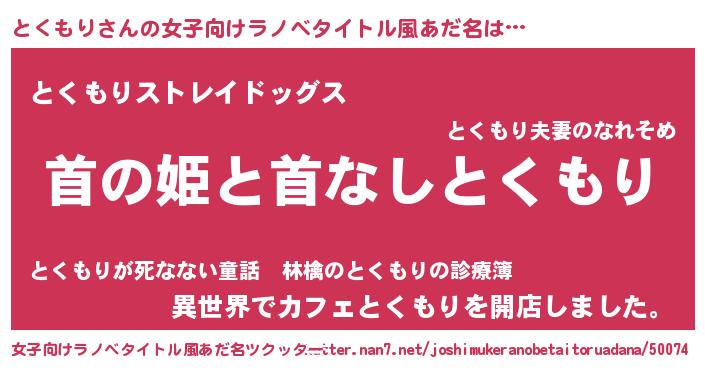 | ヘコむあだ名 | 『とくもり(震え声)』『とくを』 |
