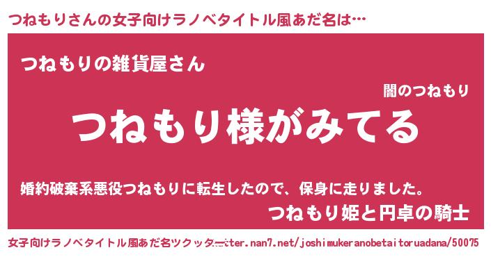 | 男性向けラノベタイトル風あだ名 | 『つねもりの嫁は女の子じゃないと思った?』 |