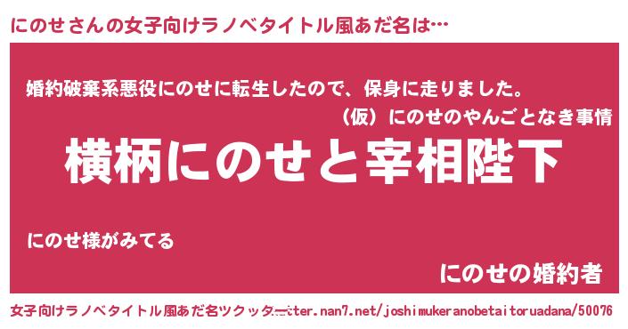 | 胡散臭い通販商品みたいなあだ名 | 『運命の人と巡り会える高級そうな壺…その名も「にのせ」』 |