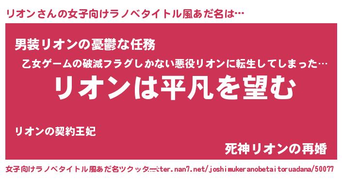 | 男性向けラノベタイトル風あだ名 | 『ダンジョンにリオンを求めるのは間違っているだろうか』 |