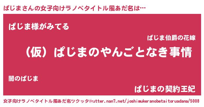 | 男性向けラノベタイトル風あだ名 | 『ぱじまの憂鬱』 |