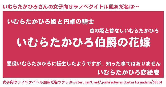 | ファンタジー風あだ名 | 『エターナルイムラタカヒロー』 |