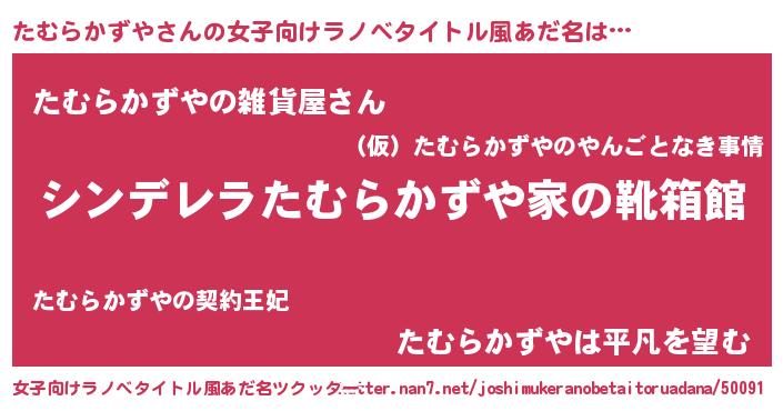 | 男性向けラノベタイトル風あだ名 | 『緋弾のタムラカズヤ』 |