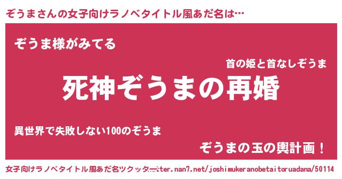| 欧米人風あだ名 | 『ダニエルぞうま』『ウサインぞうま』 |