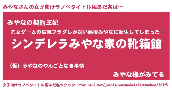 | ヘコむあだ名 | 『みやな(笑)』『みやを』『みやにー』 |