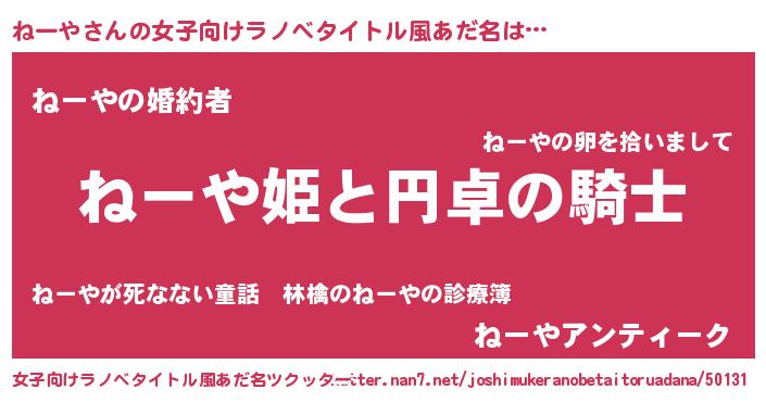 ねーやさんの女子向けラノベタイトル風あだ名
