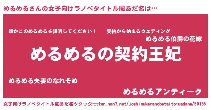| 男性向けラノベタイトル風あだ名 | 『誰もが恐れるあのめるめるが、ぼくの専属メイドになるようです。』 |