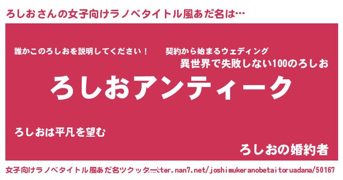 | 男性向けラノベタイトル風あだ名 | 『魔法科高校のろしお』 |
