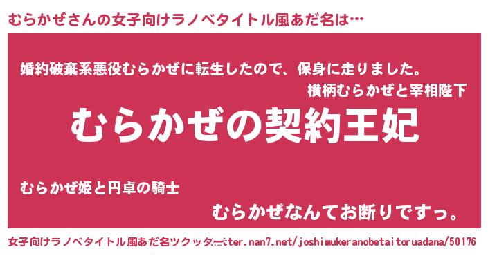 | 男性向けラノベタイトル風あだ名 | 『誰もが恐れるあのむらかぜが、ぼくの専属メイドになるようです。』 |