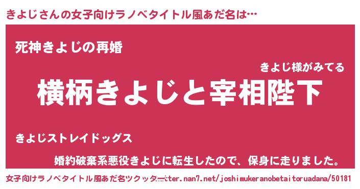 | 意味不明あだ名 | 『眠気覚ましガムきよじ味』『自称きよじ』 |