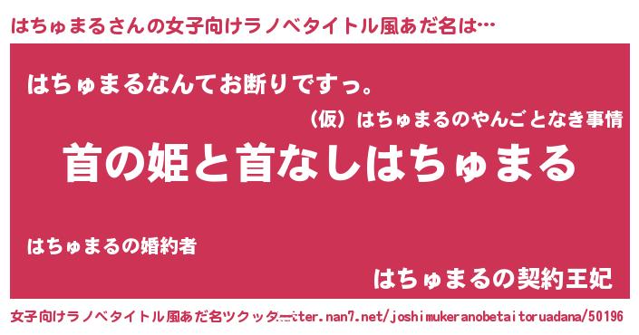 | 意味不明あだ名 | 『自称はちゅまる』『永久保存はちゅまる』 |