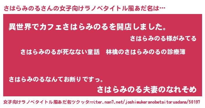 | 男性向けラノベタイトル風あだ名 | 『魔弾の王とさはらみのる』 |