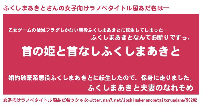 | 男性向けラノベタイトル風あだ名 | 『はたらくふくしまあきとさま!』 |