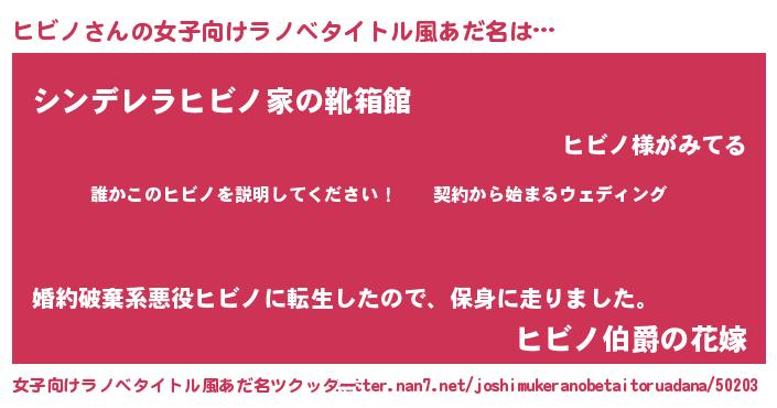| 男性向けラノベタイトル風あだ名 | 『ヒビノアートオンライン』 |