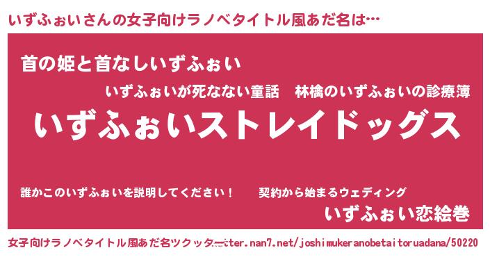 | 男性向けラノベタイトル風あだ名 | 『Re:いずふぉいから始める異世界生活』 |