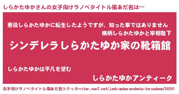 | 意味不明あだ名 | 『住所不定無職しらかたゆか(4歳)』 |