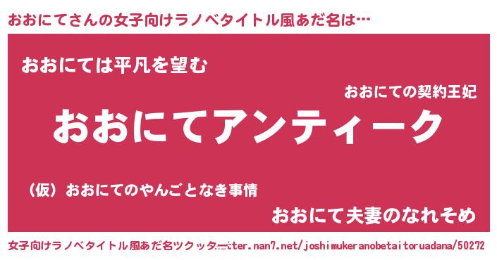 | 意味不明あだ名 | 『自称おおにて』『永久保存おおにて』 |