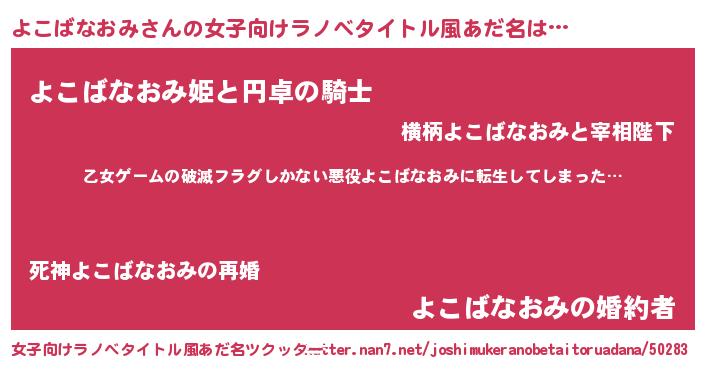| 胡散臭い通販商品みたいなあだ名 | 『世界中を虜にした世界で10本だけ現存している希少なブランデー…その名も「よこばなおみ」』 |