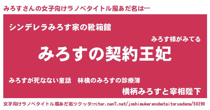 | 男性向けラノベタイトル風あだ名 | 『みろすという概念が存在しない退屈な世界 』 |