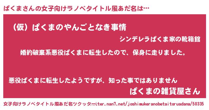 | 胡散臭い通販商品みたいなあだ名 | 『必ず成功するブレスレット…その名も「ぱくま」』 |