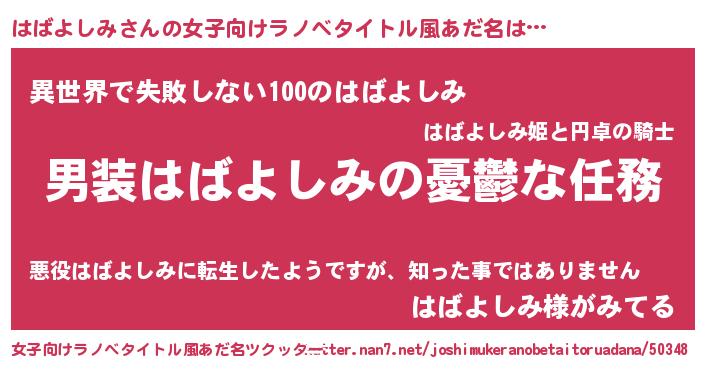 | 男性向けラノベタイトル風あだ名 | 『うちのはばよしみが世界を掌握している!』 |