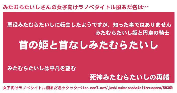 | 男性向けラノベタイトル風あだ名 | 『はたらくみたむらたいしさま!』 |