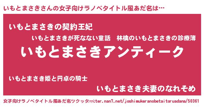 | 男性向けラノベタイトル風あだ名 | 『魔法科高校のいもとまさき』 |