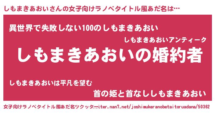 | ヒーロー風カッコイイあだ名 | 『ウルトラしもまきあおいマン』 |