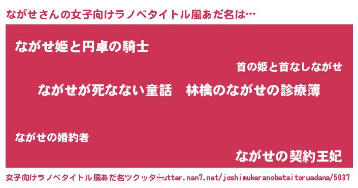 | 男性向けラノベタイトル風あだ名 | 『魔弾の王とながせ』『ながせの憂鬱』 |