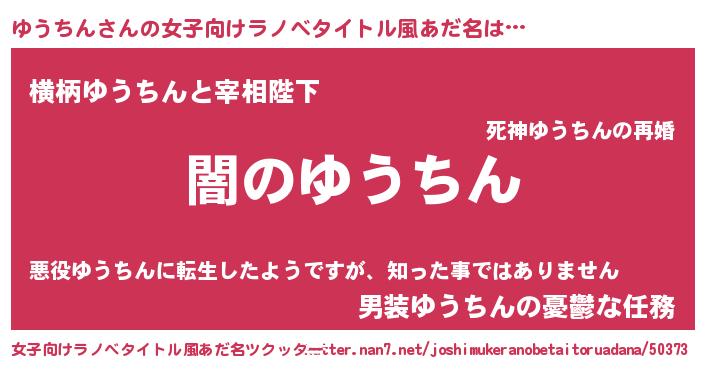 | 男性向けラノベタイトル風あだ名 | 『Re:ゆうちんから始める異世界生活』 |