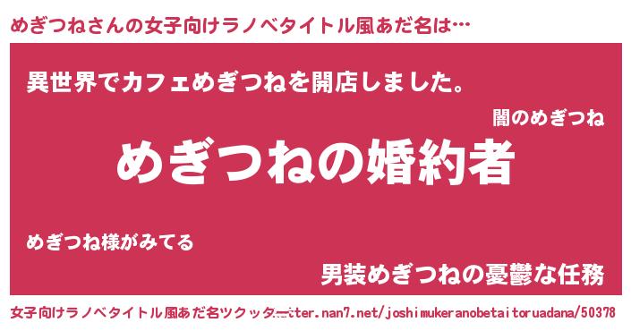 | 意味不明あだ名 | 『めぎつねフォーエバー』『自称めぎつね』 |