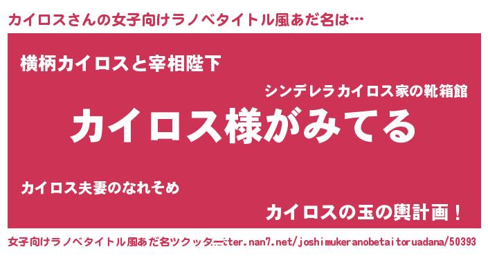 | 男性向けラノベタイトル風あだ名 | 『カイロスの嫁は女の子じゃないと思った?』 |